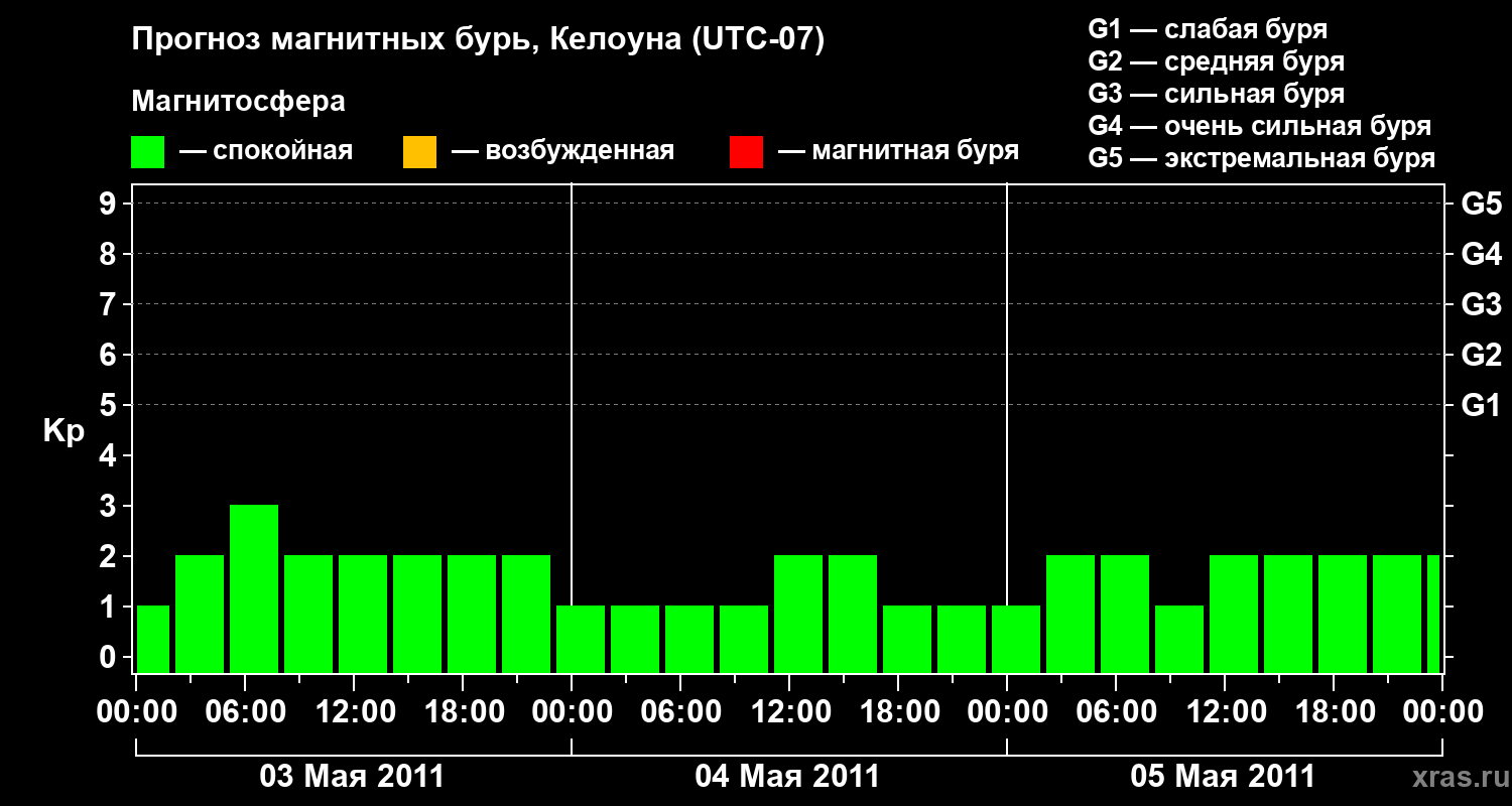 Прогноз магнитных бурь в Келоуне — 3 мая 2011 года
