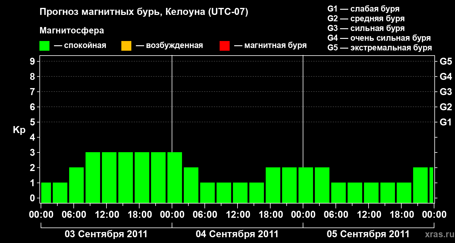 Прогноз магнитных бурь в Келоуне — 3 сентября 2011 года