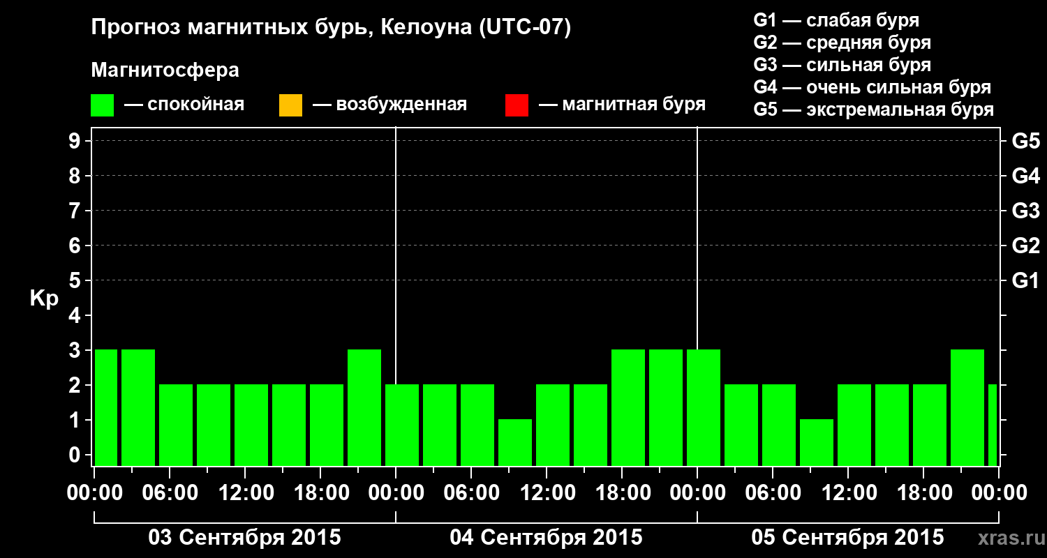 Прогноз магнитных бурь в Келоуне на 3 сентября 2015 года