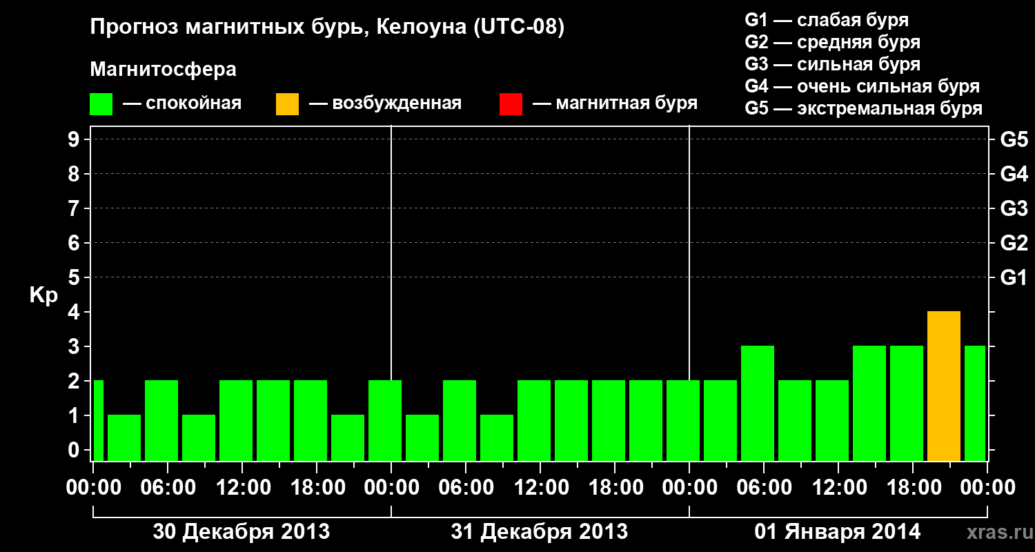 Прогноз магнитных бурь в Келоуне — 30 декабря 2013 года