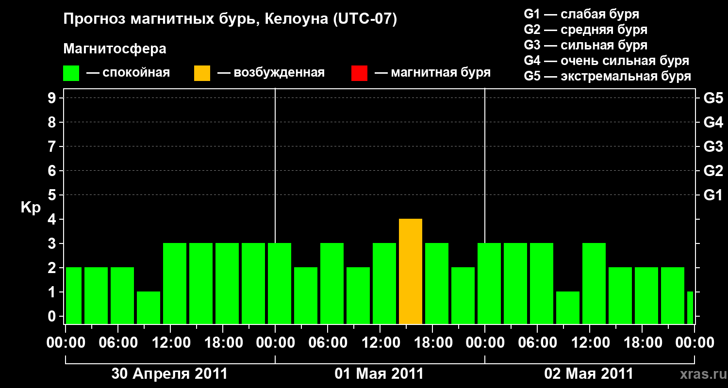 Прогноз магнитных бурь в Келоуне — 30 апреля 2011 года