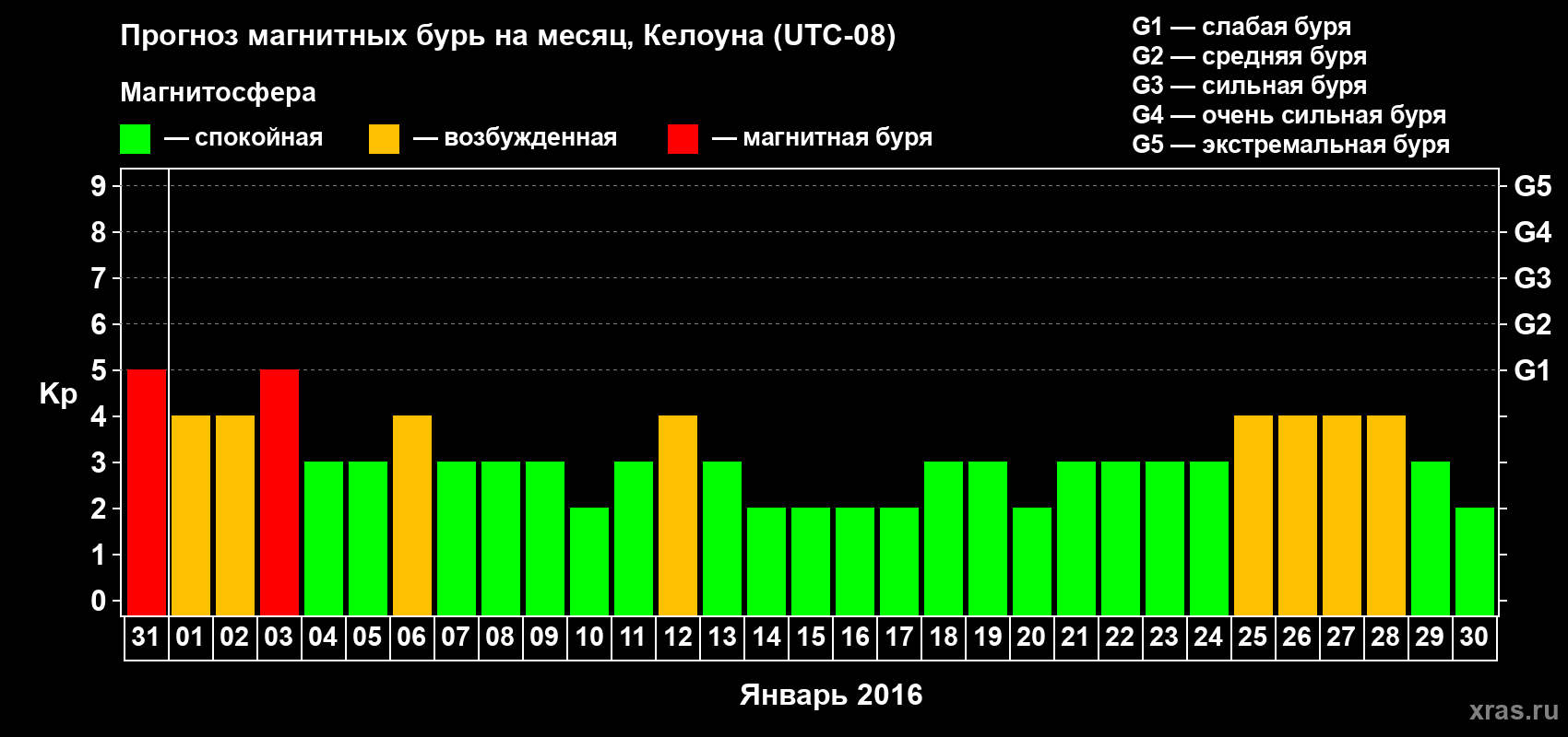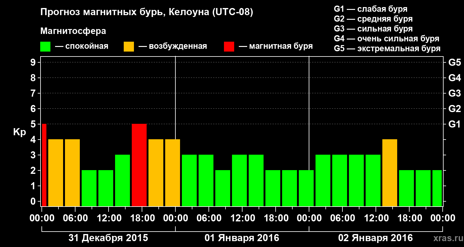Прогноз магнитных бурь в Келоуне на 31 декабря 2015 года