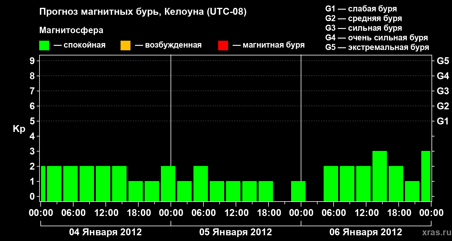Прогноз магнитных бурь в Келоуне на 4 января 2012 года