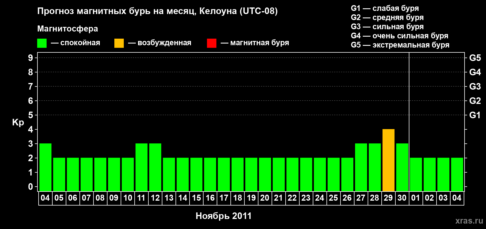 Прогноз магнитных бурь в Келоуне — 4 ноября 2011 года