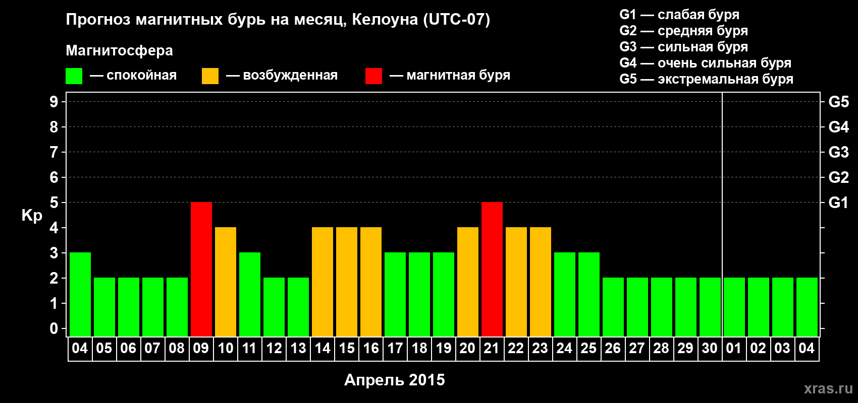 Прогноз магнитных бурь в Келоуне на 4 апреля 2015 года