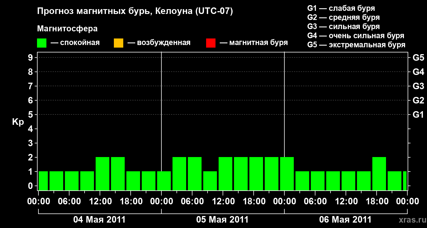 Прогноз магнитных бурь в Келоуне — 4 мая 2011 года