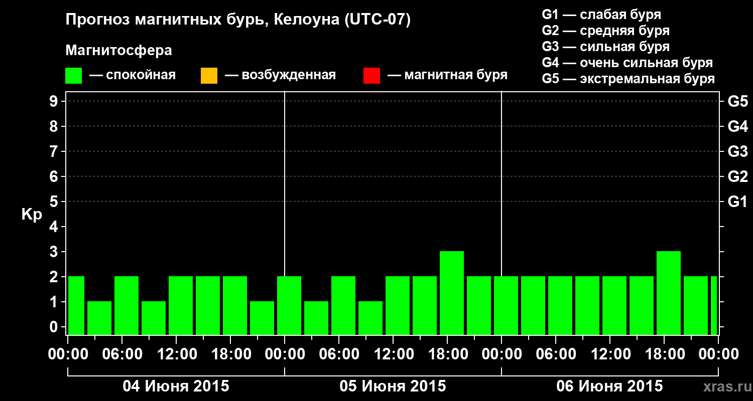Прогноз магнитных бурь в Келоуне на 4 июня 2015 года