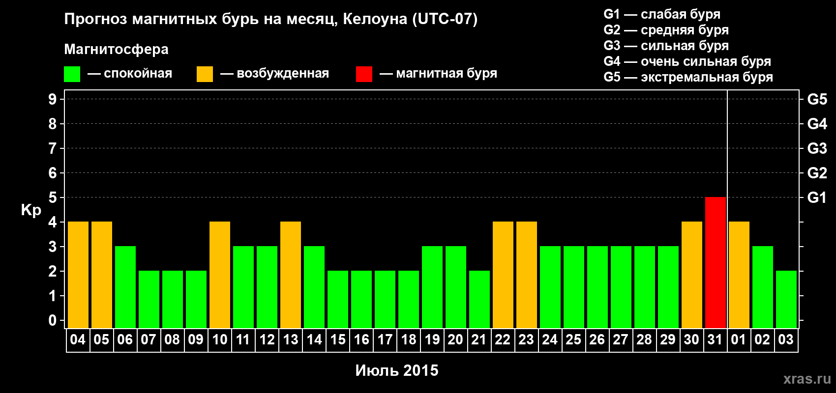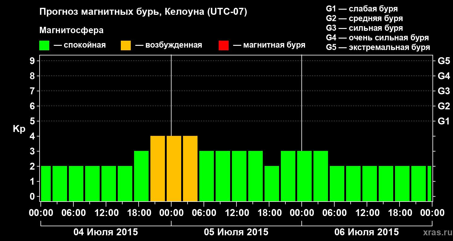 Прогноз магнитных бурь в Келоуне на 4 июля 2015 года