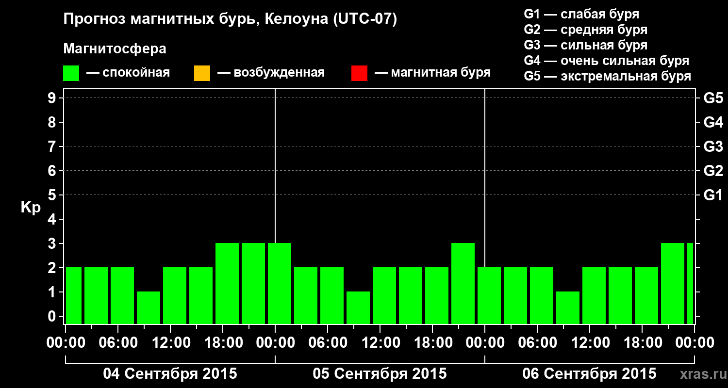 Прогноз магнитных бурь в Келоуне на 4 сентября 2015 года