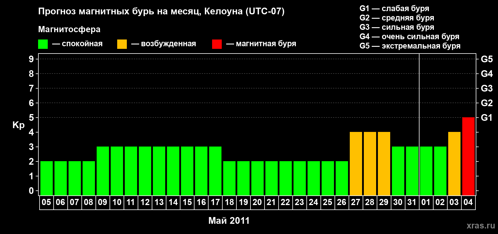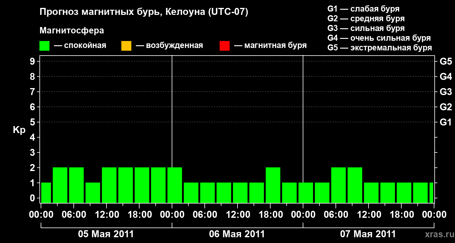 Прогноз магнитных бурь в Келоуне на 5 мая 2011 года