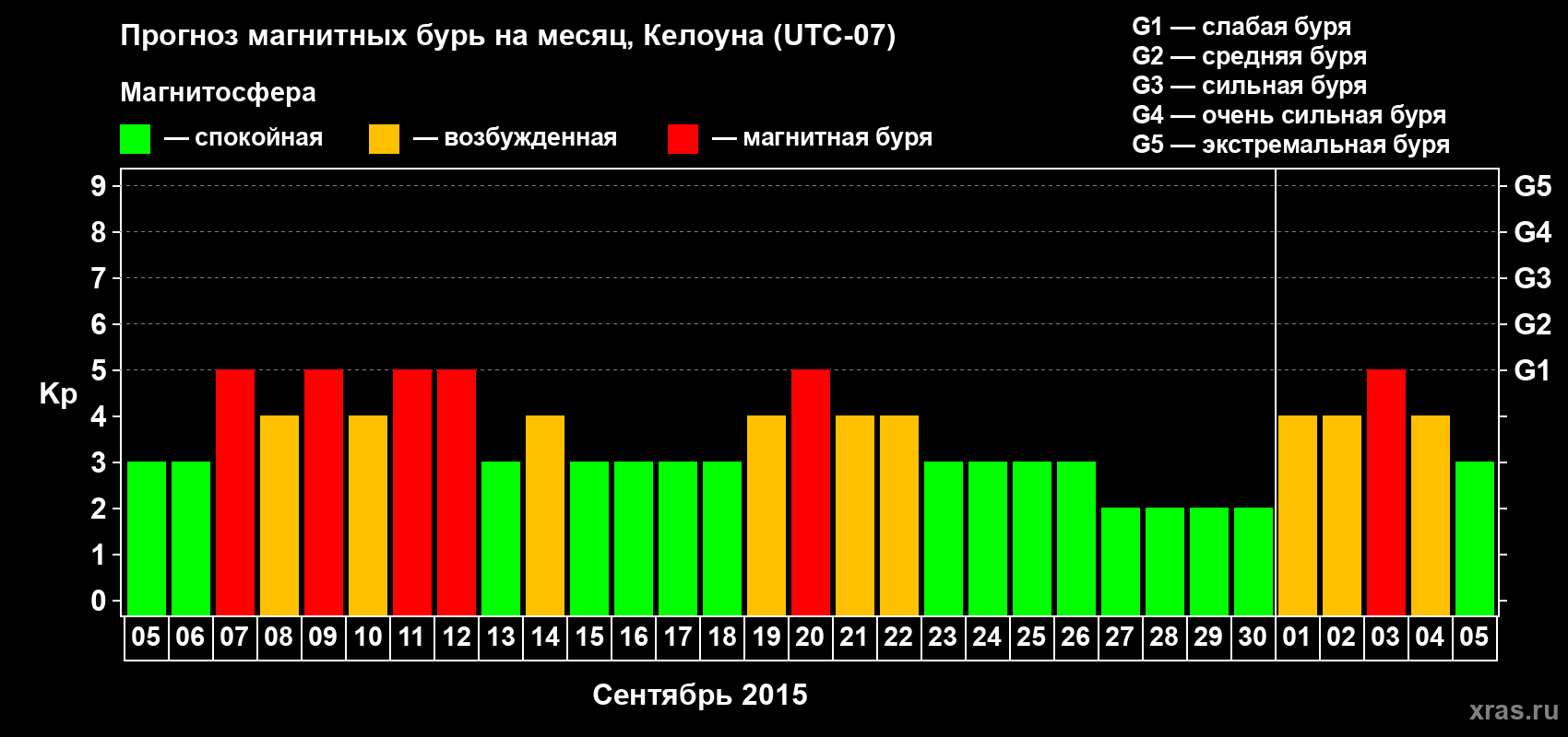 Прогноз магнитных бурь в Келоуне — 5 сентября 2015 года