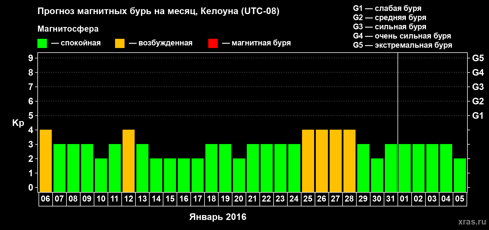 Прогноз магнитных бурь в Келоуне — 6 января 2016 года