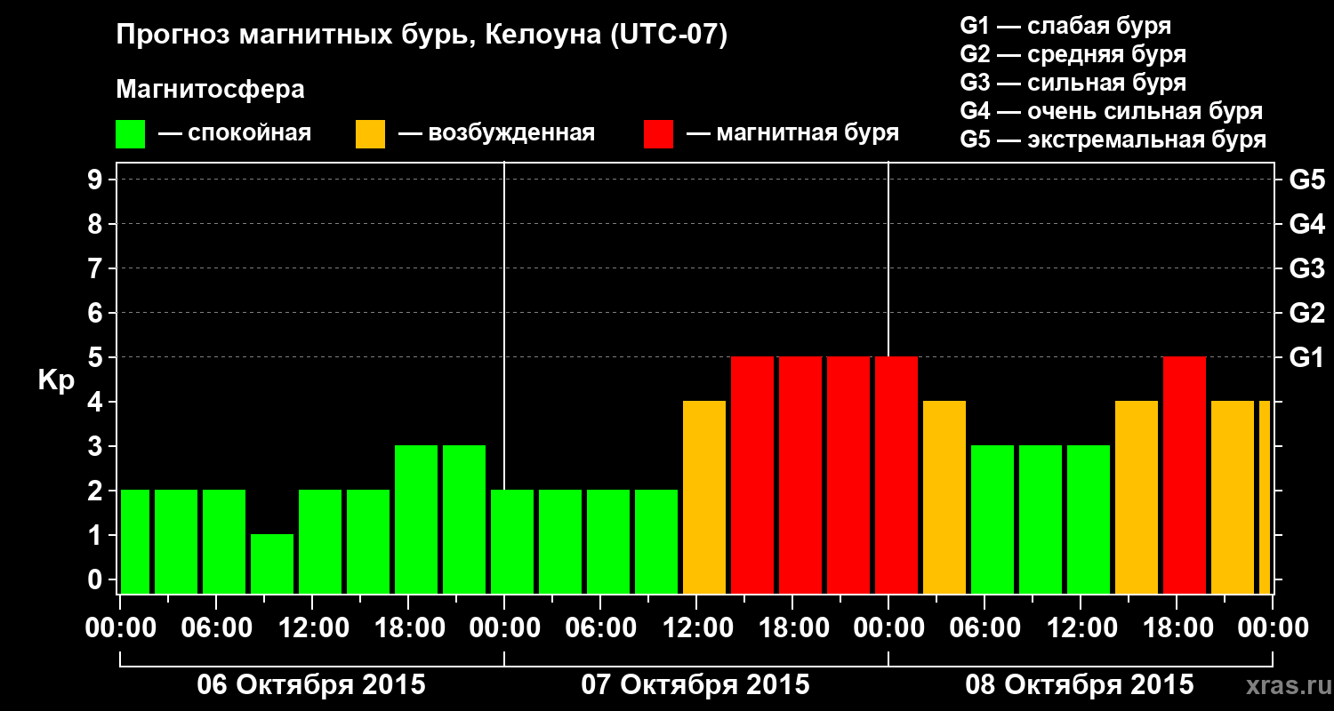 Прогноз магнитных бурь в Келоуне на 6 октября 2015 года