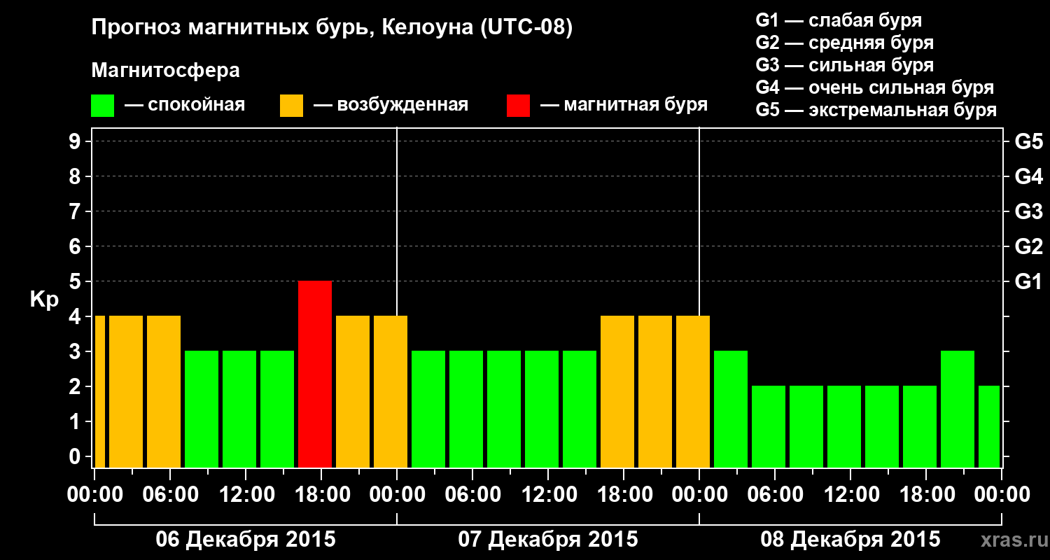 Прогноз магнитных бурь в Келоуне на 6 декабря 2015 года