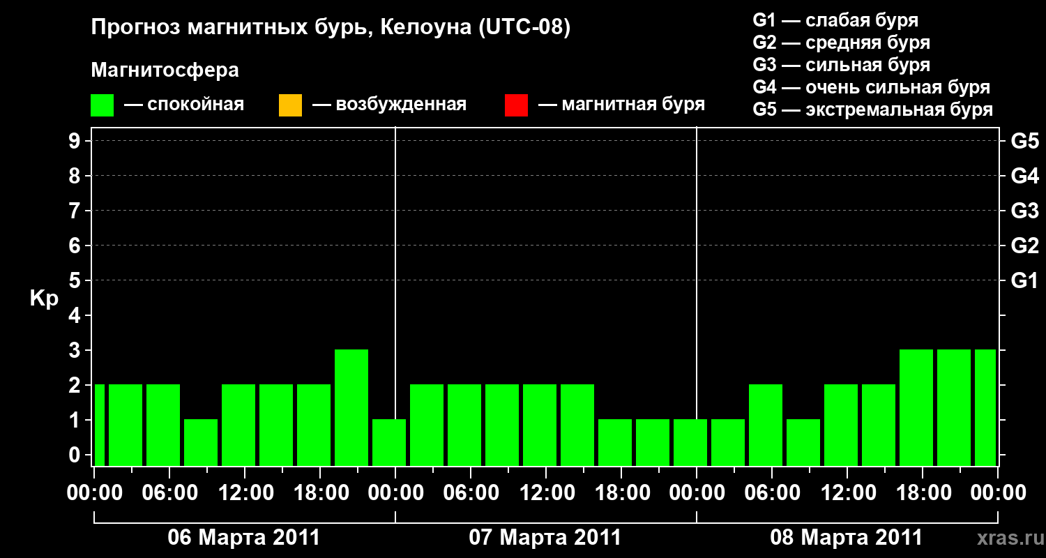 Прогноз магнитных бурь в Келоуне на 6 марта 2011 года