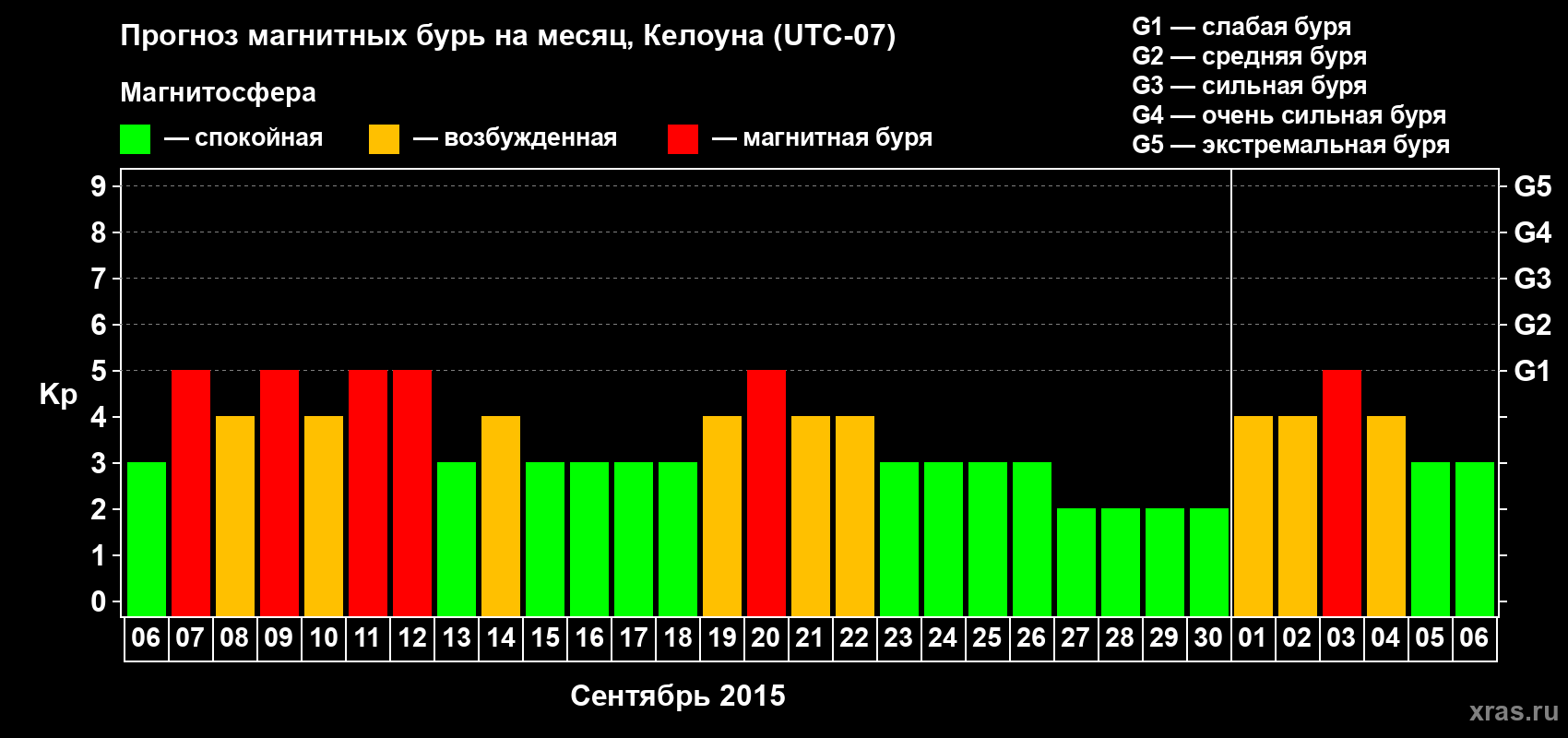 Прогноз магнитных бурь в Келоуне — 6 сентября 2015 года