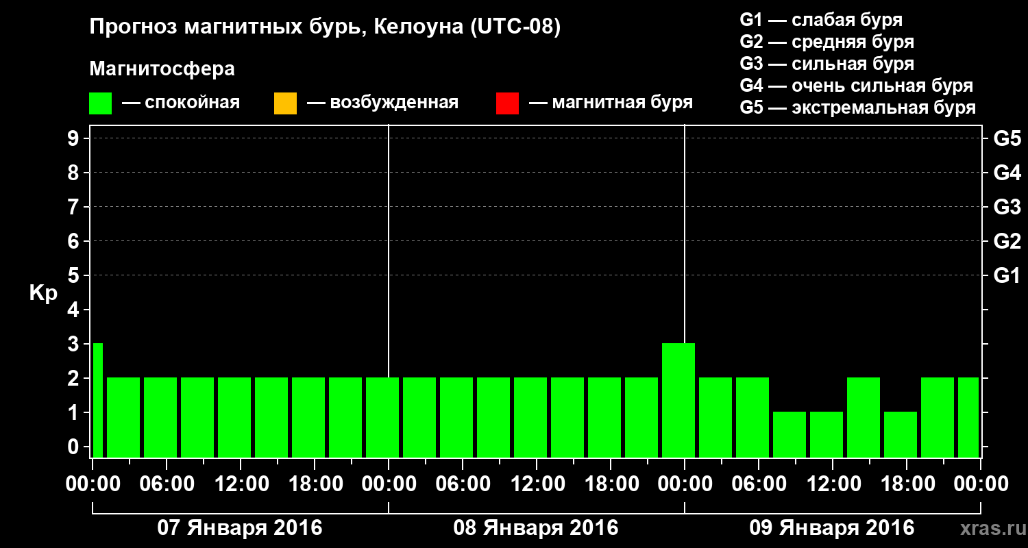 Прогноз магнитных бурь в Келоуне на 7 января 2016 года