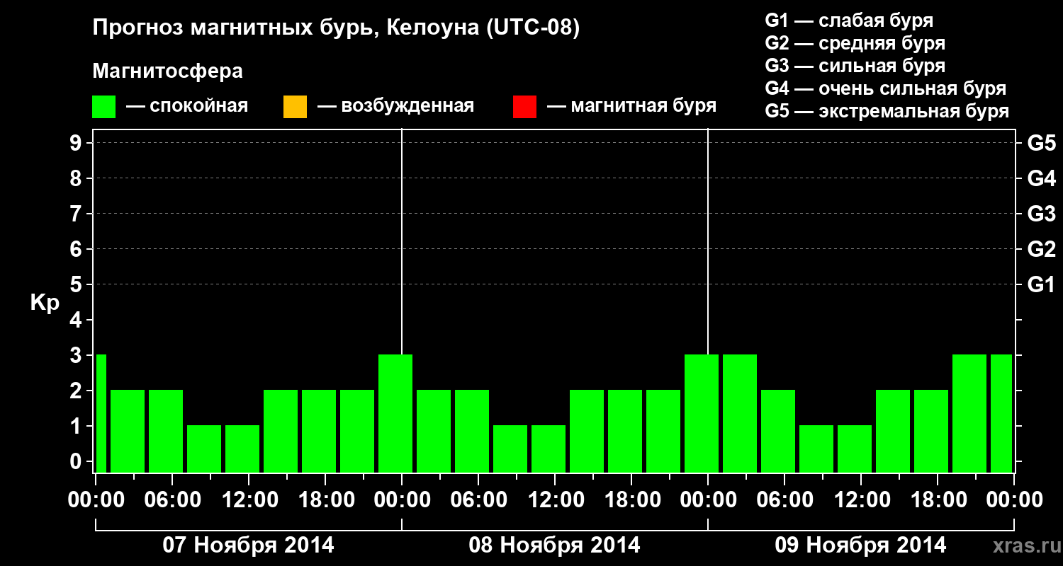 Прогноз магнитных бурь в Келоуне на 7 ноября 2014 года