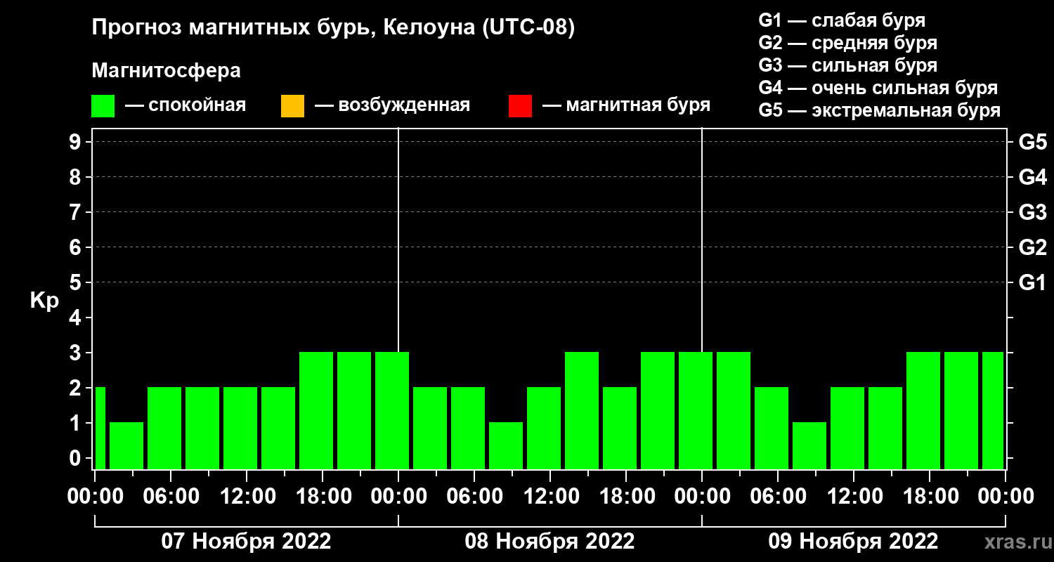 Прогноз магнитных бурь в Келоуне на 7 ноября 2022 года