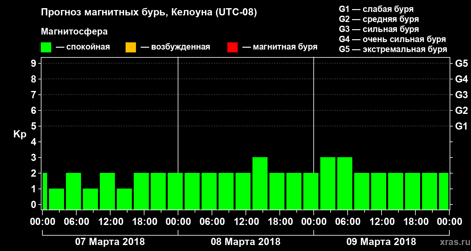 Прогноз магнитных бурь в Келоуне на 7 марта 2018 года