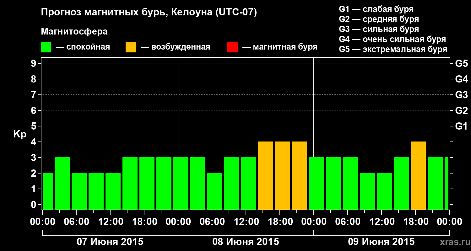 Прогноз магнитных бурь в Келоуне на 7 июня 2015 года
