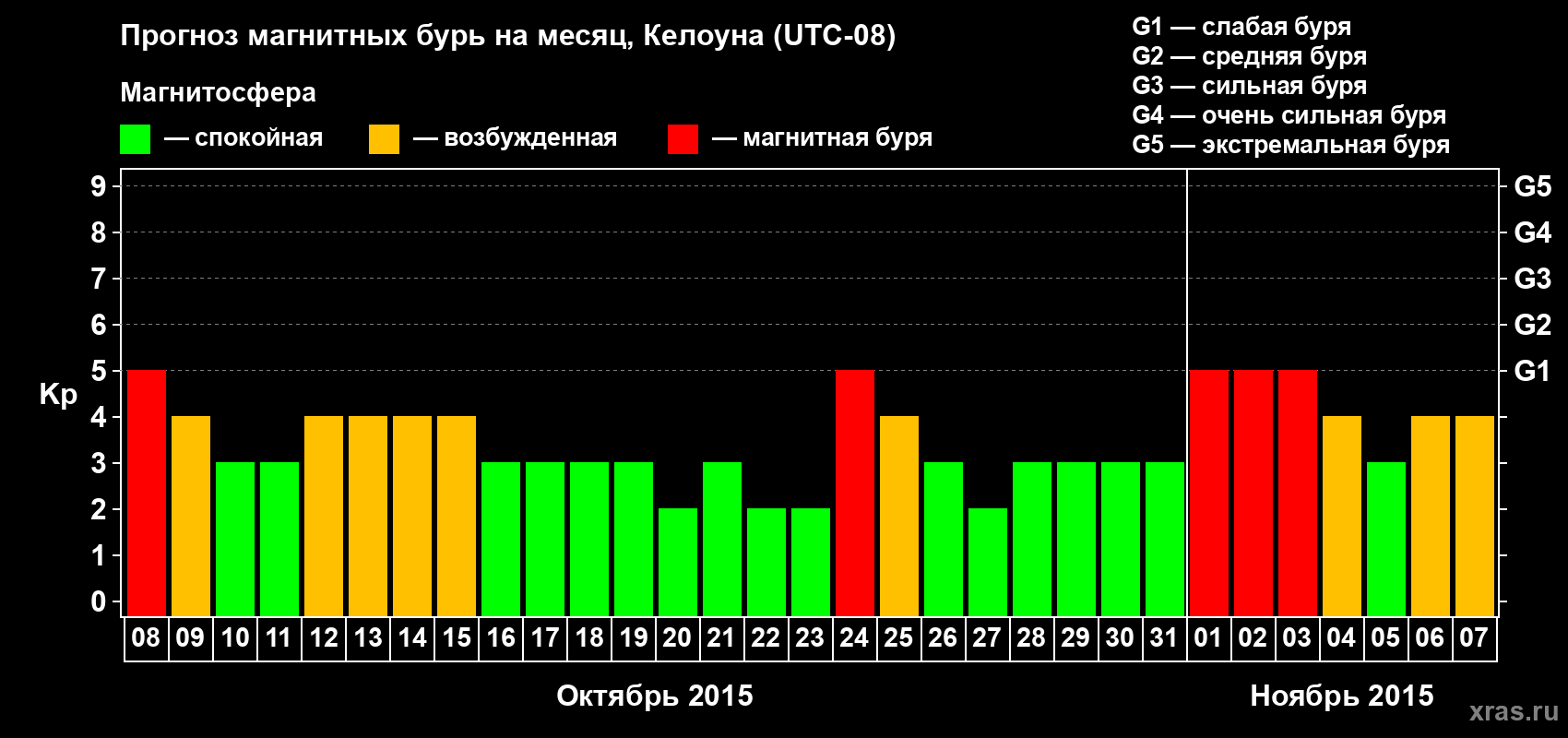 Прогноз магнитных бурь в Келоуне на 8 октября 2015 года