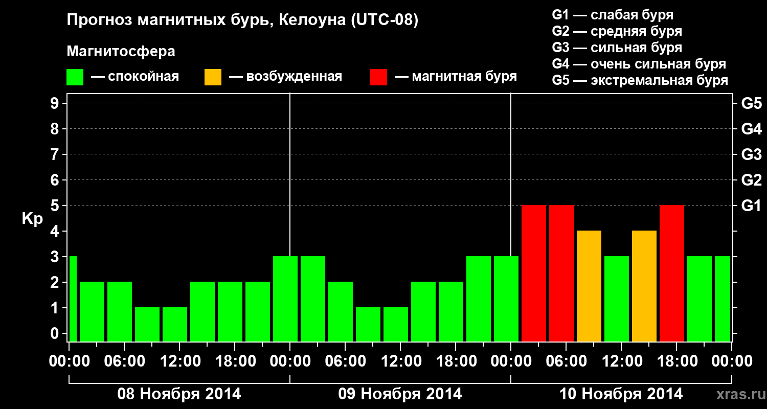 Прогноз магнитных бурь в Келоуне — 8 ноября 2014 года