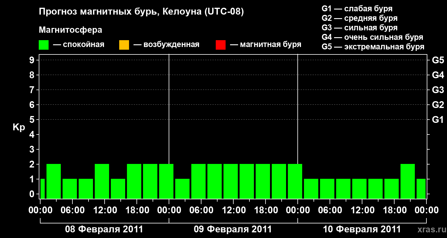 Прогноз магнитных бурь в Келоуне — 8 февраля 2011 года