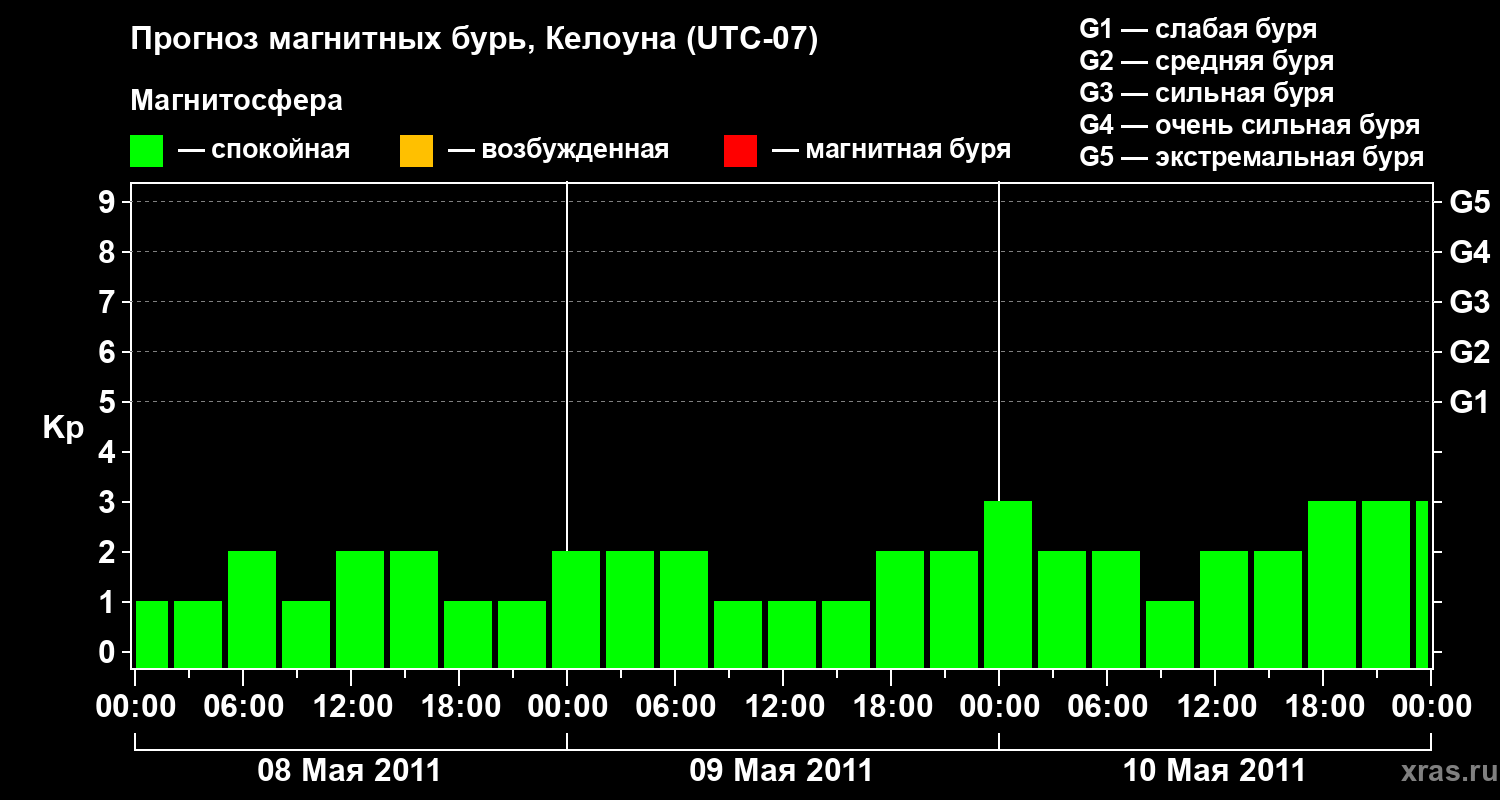 Прогноз магнитных бурь в Келоуне — 8 мая 2011 года