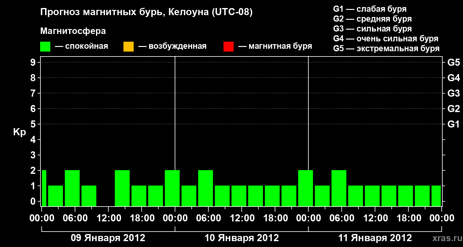 Прогноз магнитных бурь в Келоуне на 9 января 2012 года