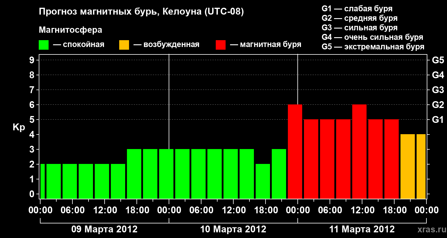 Прогноз магнитных бурь в Келоуне — 9 марта 2012 года