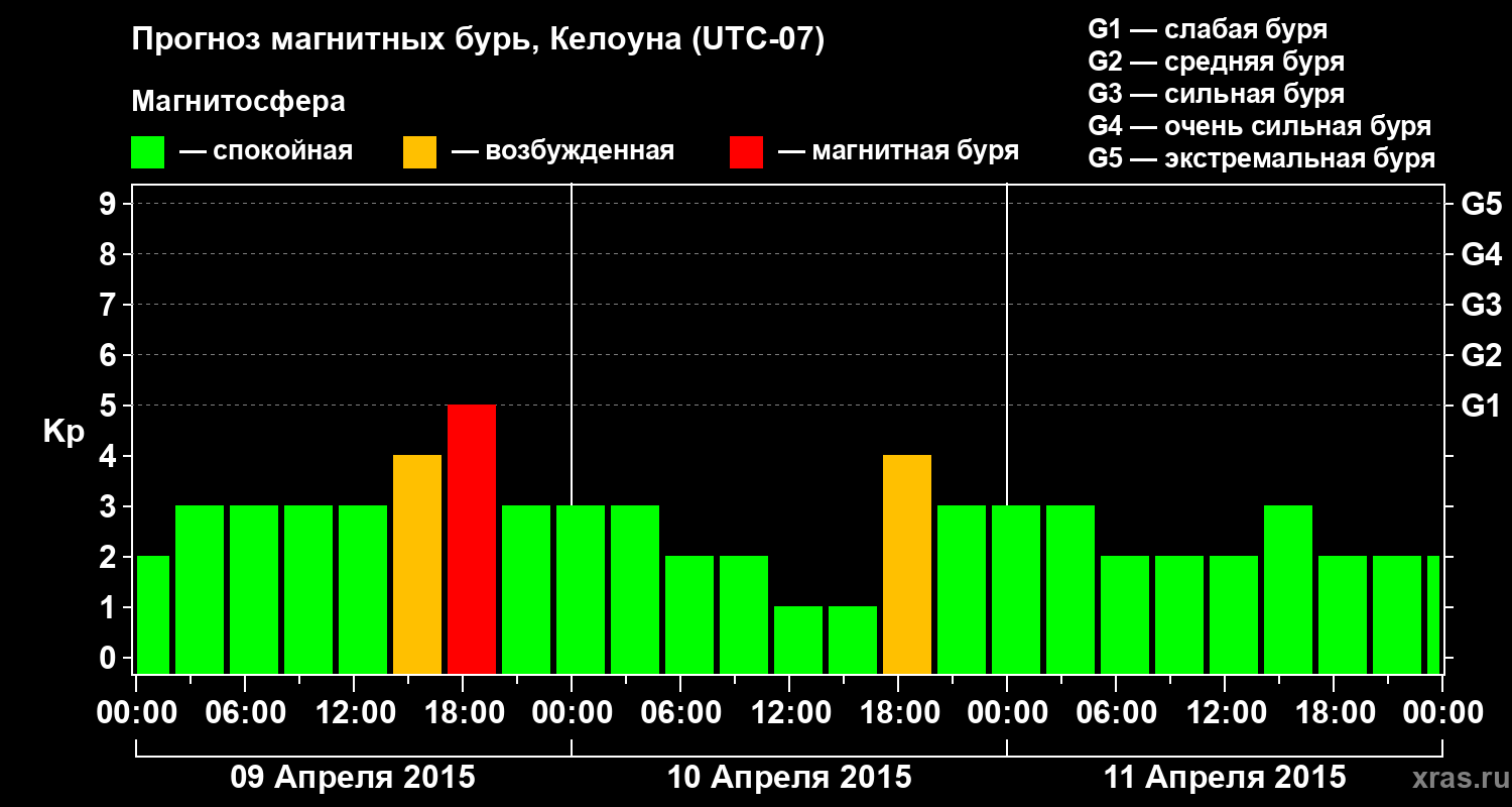 Прогноз магнитных бурь в Келоуне — 9 апреля 2015 года