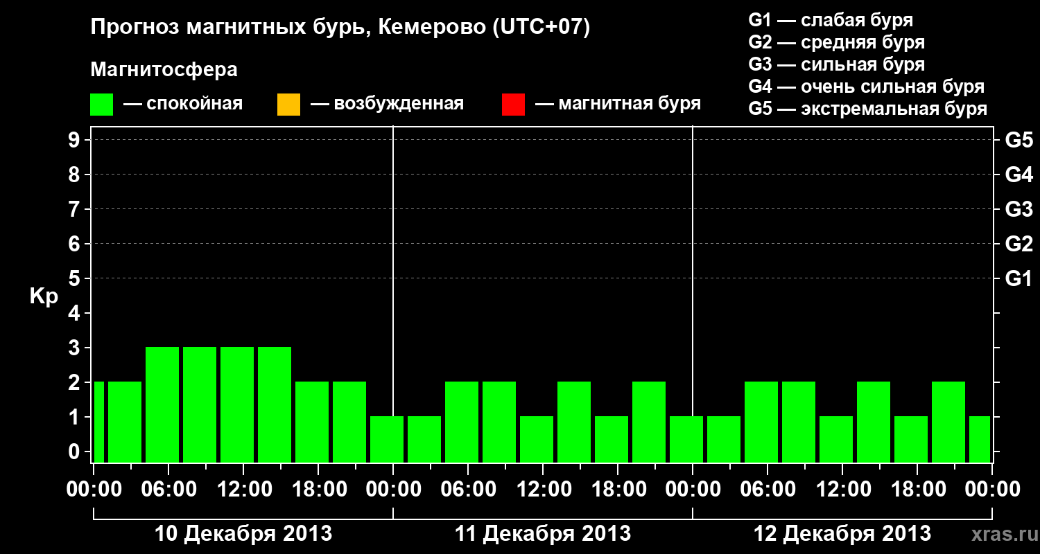 Прогноз магнитных бурь Кемерово — 10 декабря 2013 года