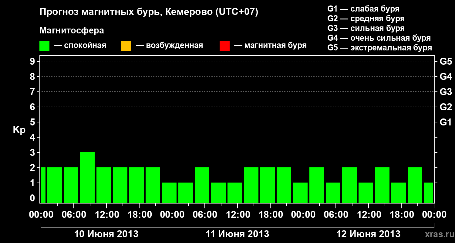 Прогноз магнитных бурь Кемерово — 10 июня 2013 года