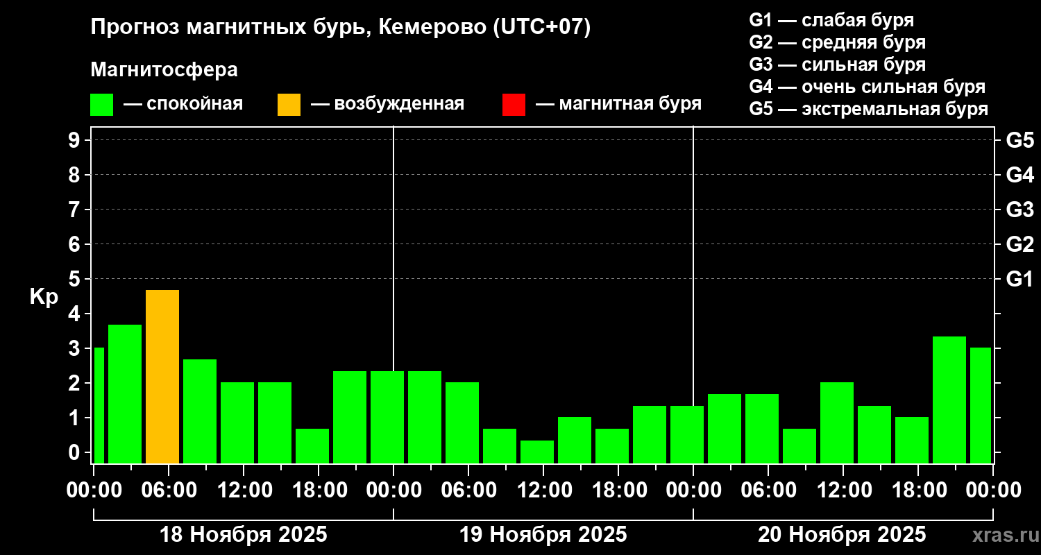 Прогноз магнитных бурь Кемерово — 18 ноября 2025 года