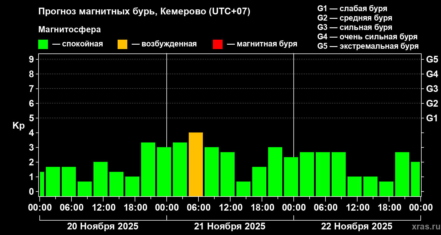 Прогноз магнитных бурь Кемерово — 20 ноября 2025 года