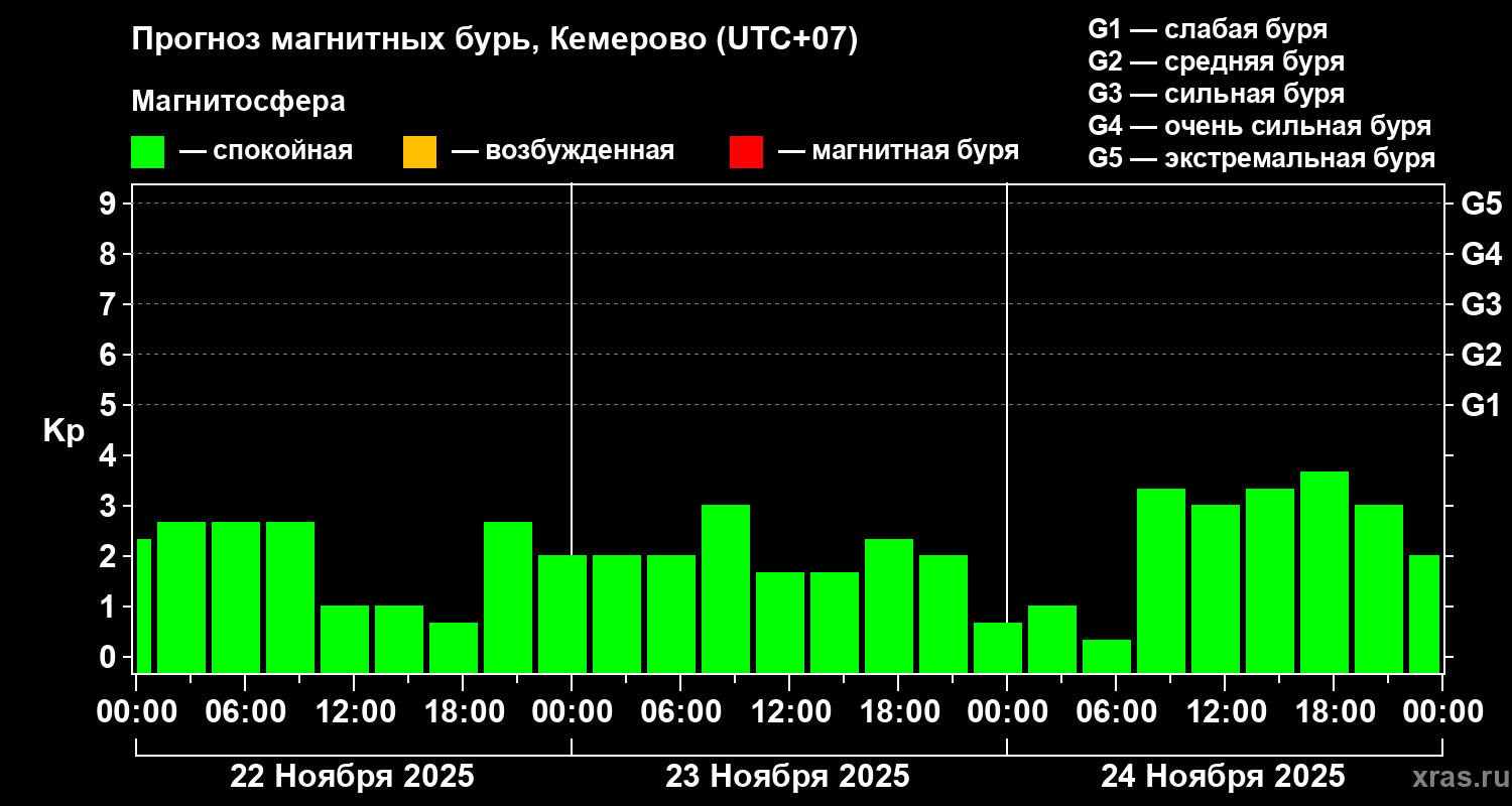 Прогноз магнитных бурь Кемерово — 22 ноября 2025 года