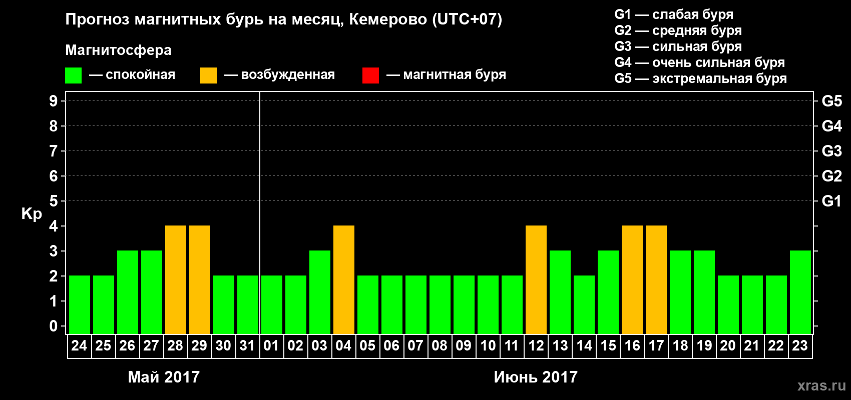 Прогноз магнитных бурь Кемерово на 24 мая 2017 года