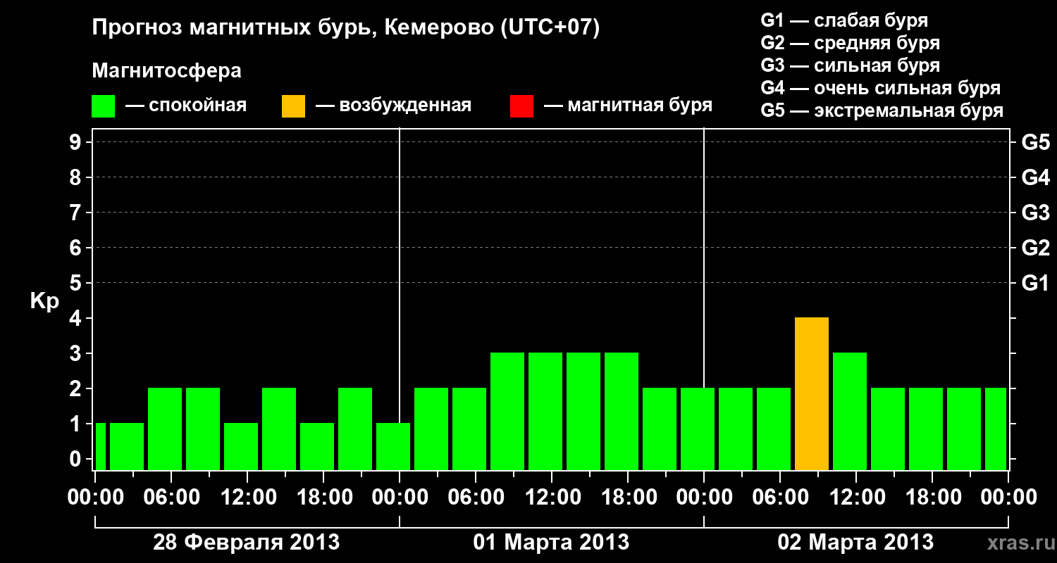 Прогноз магнитных бурь Кемерово — 28 февраля 2013 года