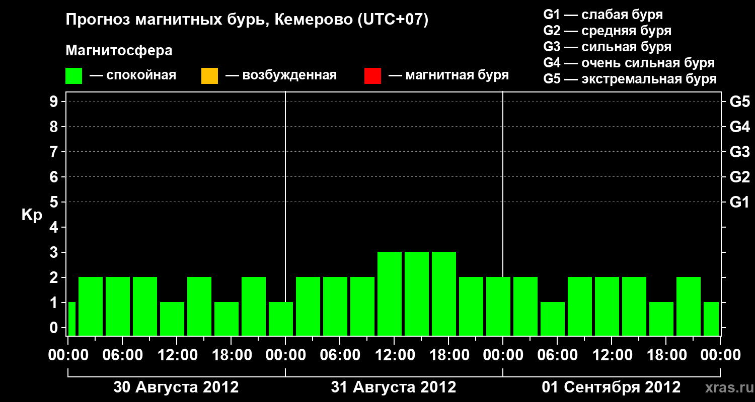 Прогноз магнитных бурь Кемерово — 30 августа 2012 года