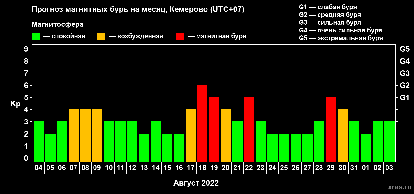 Прогноз магнитных бурь Кемерово — 4 августа 2022 года