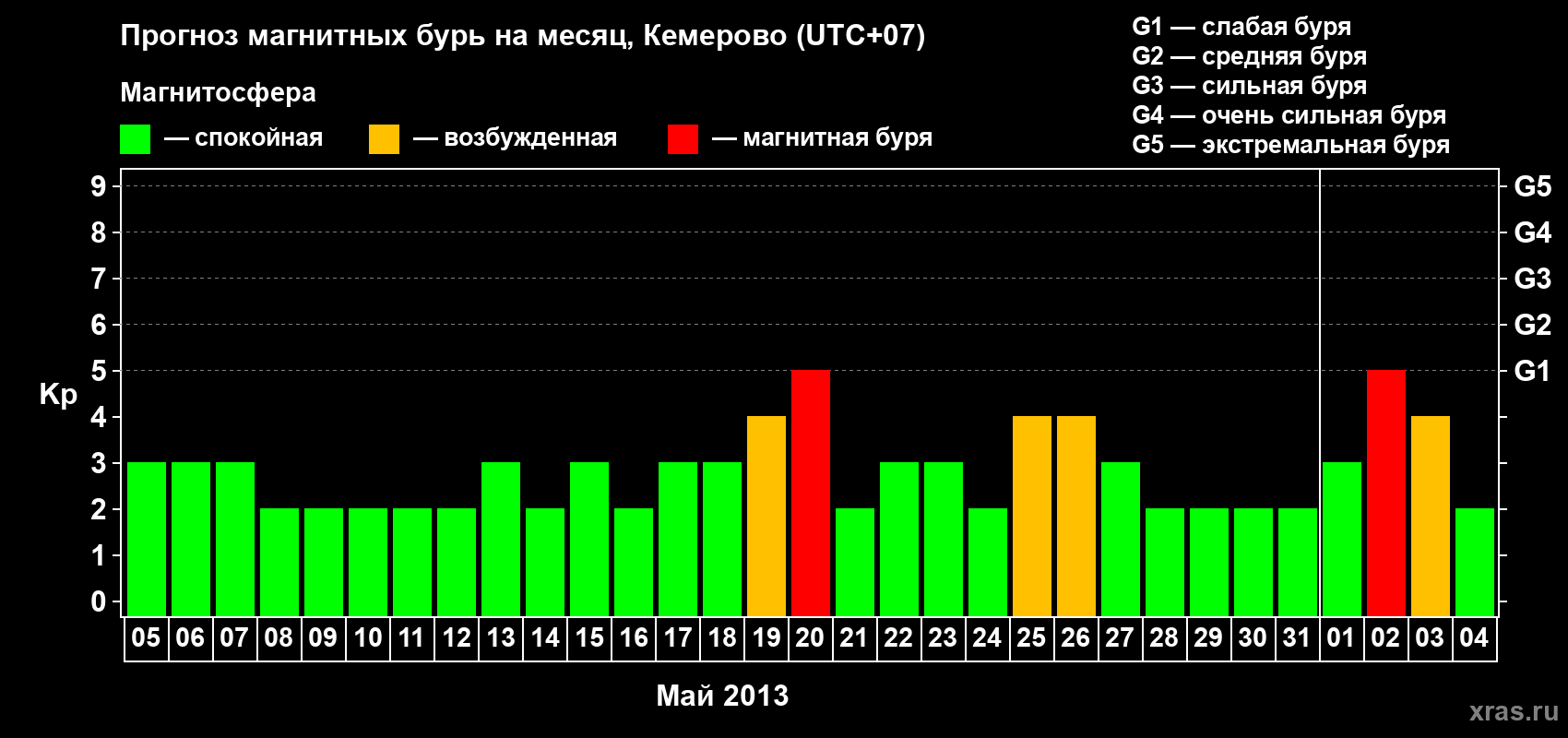 Прогноз магнитных бурь Кемерово — 5 мая 2013 года