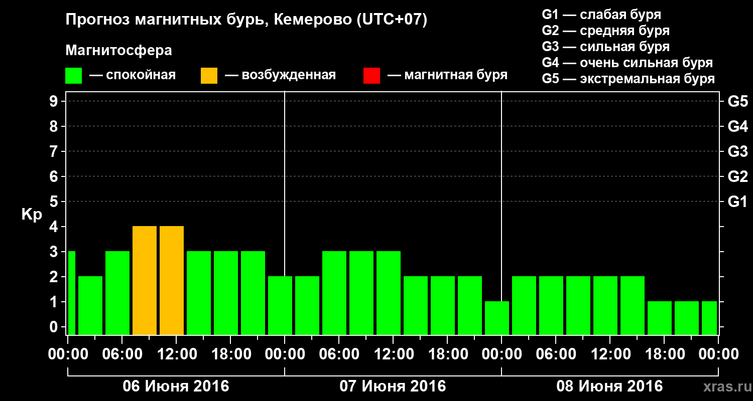 Прогноз магнитных бурь Кемерово — 6 июня 2016 года