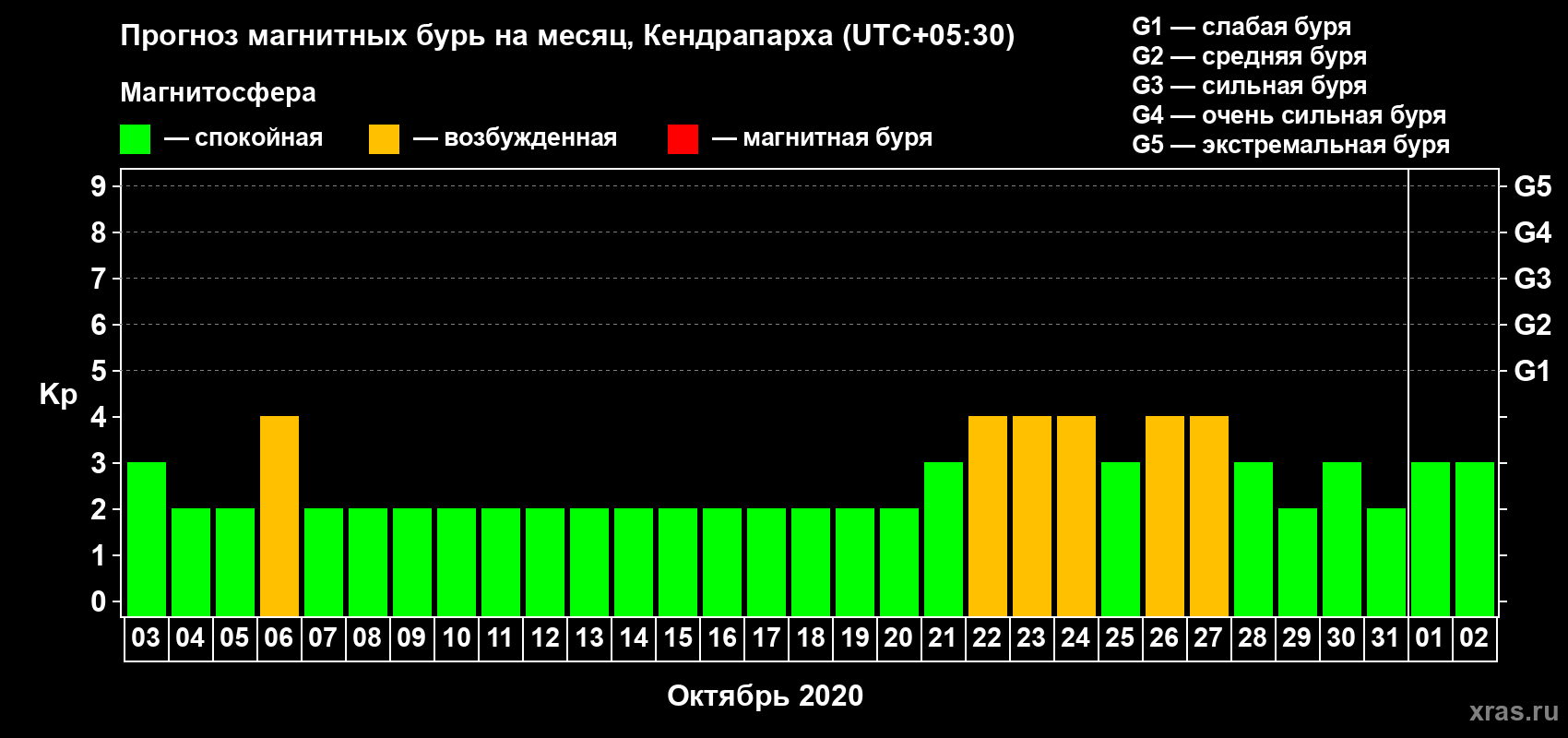 Прогноз магнитных бурь в Кендрапархе — 3 октября 2020 года