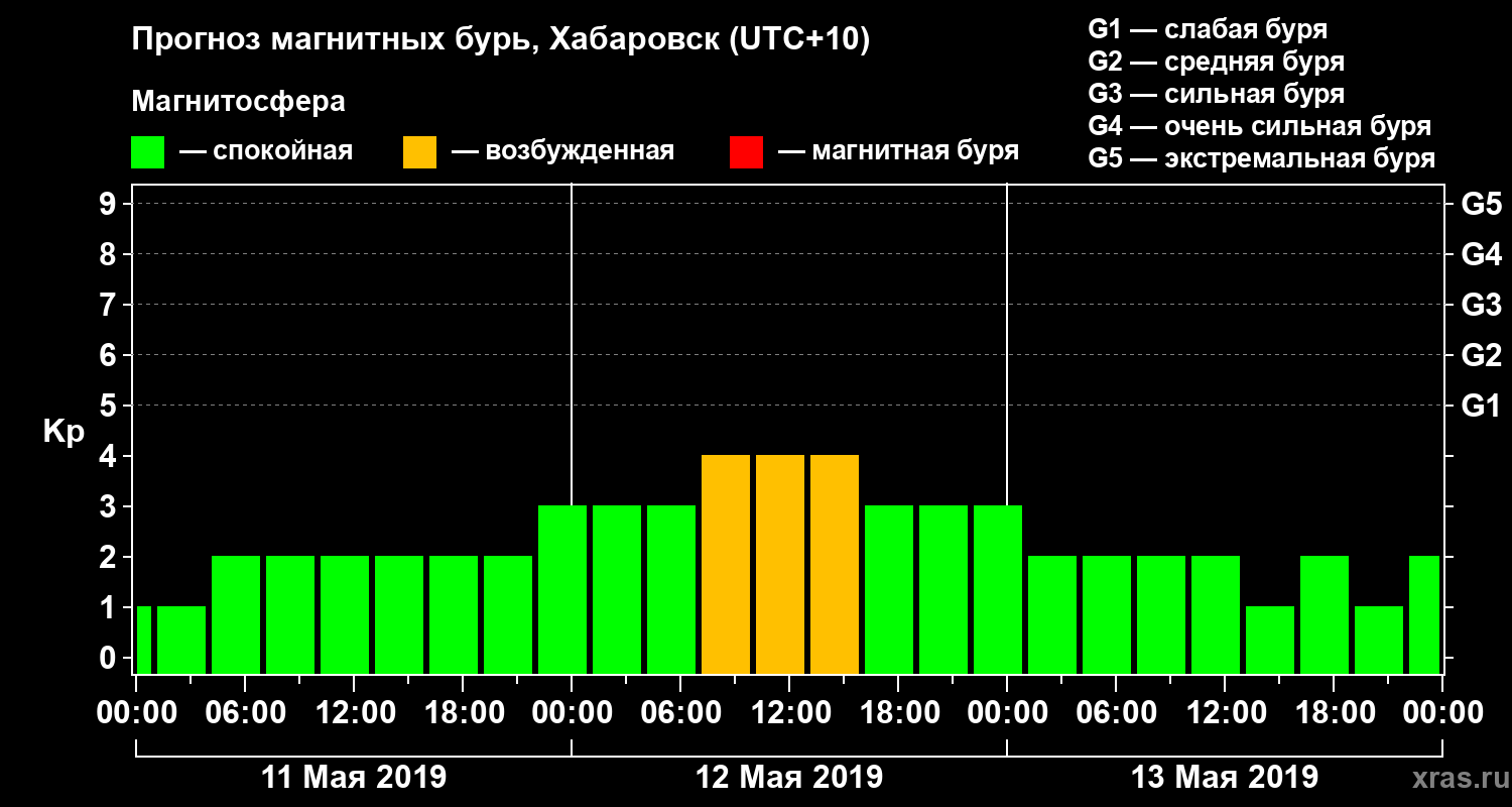 Прогноз магнитных бурь в Хабаровске — 11 мая 2019 года