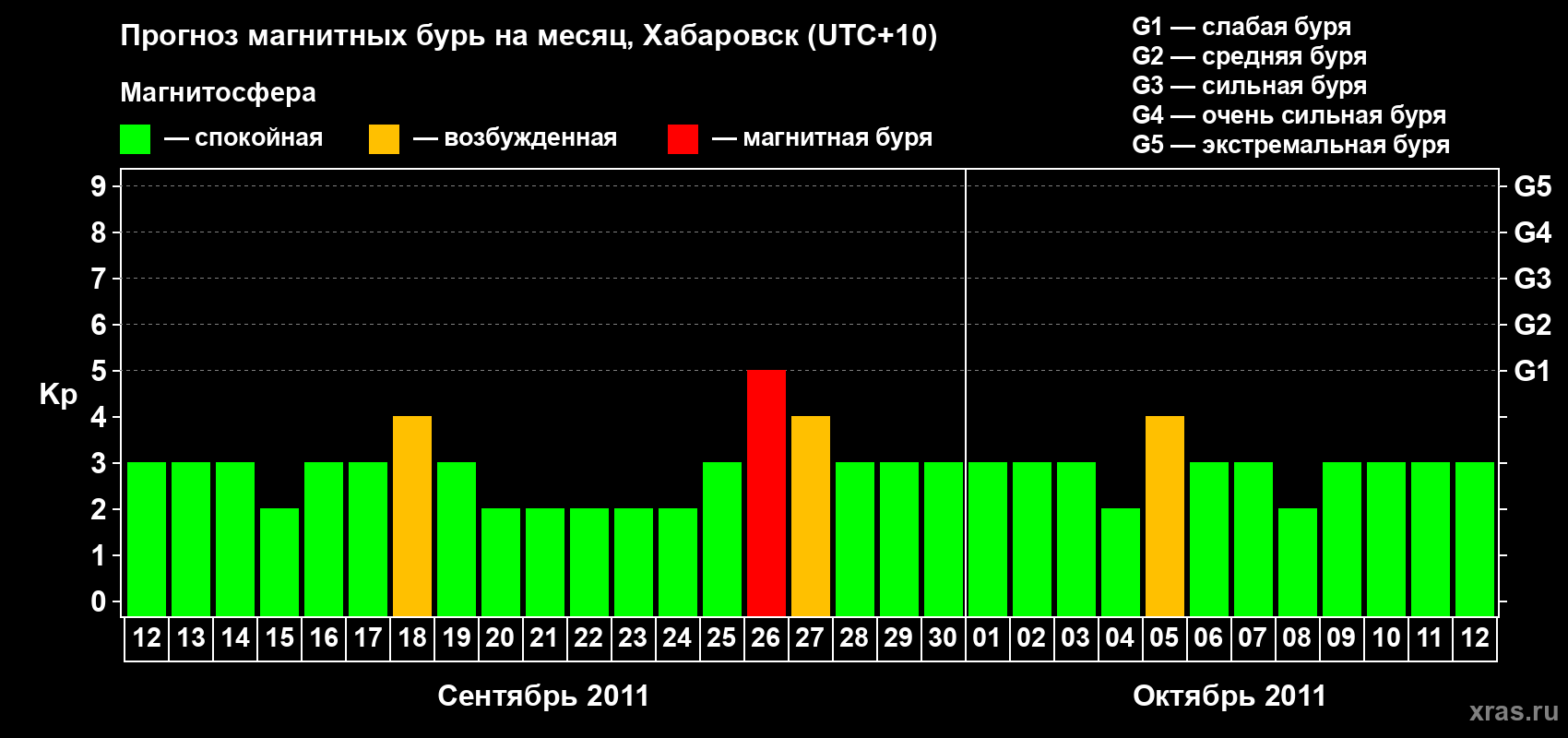 Прогноз магнитных бурь в Хабаровске — 12 сентября 2011 года