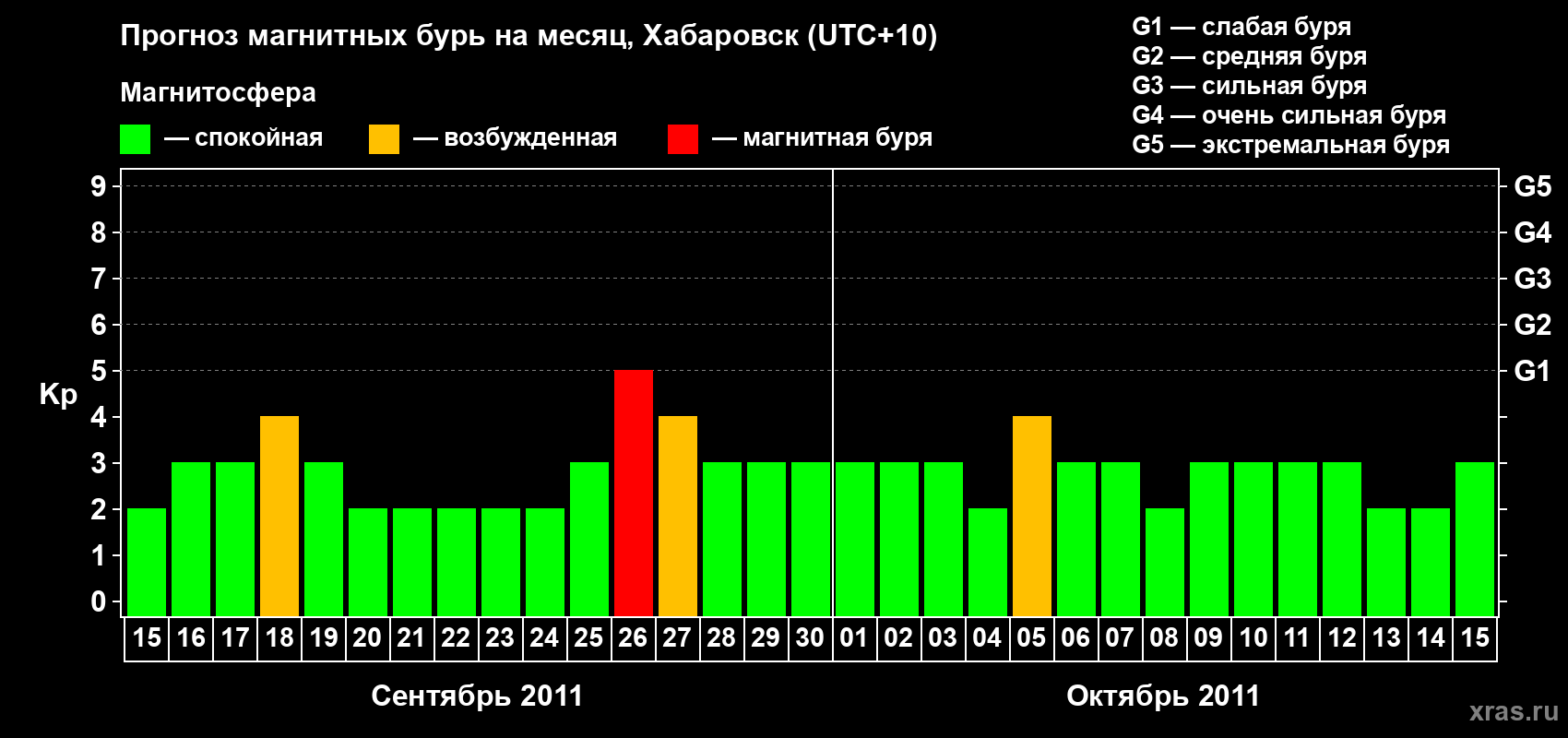 Прогноз магнитных бурь в Хабаровске — 15 сентября 2011 года
