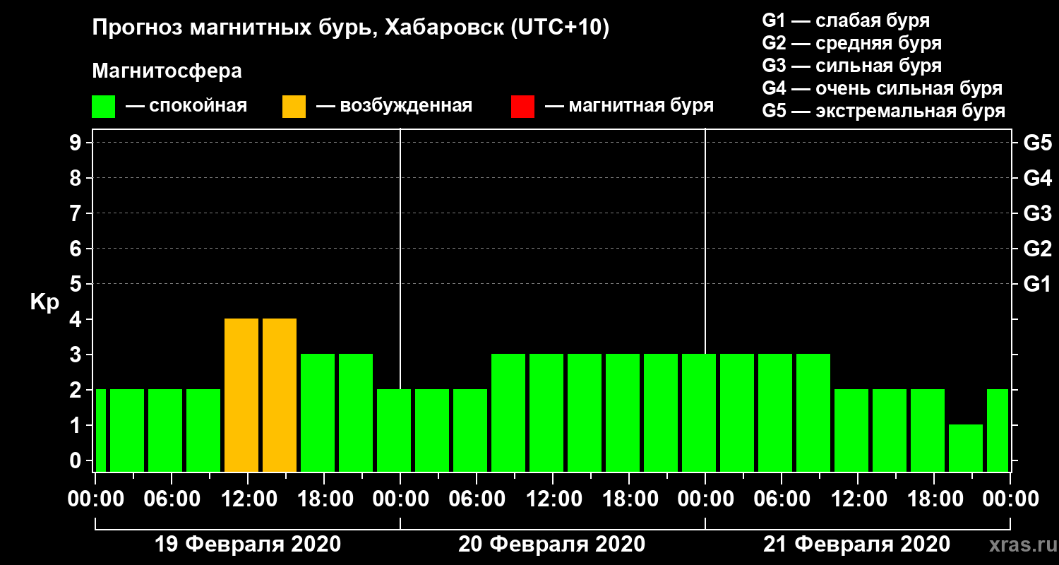 Прогноз магнитных бурь в Хабаровске на 19 февраля 2020 года
