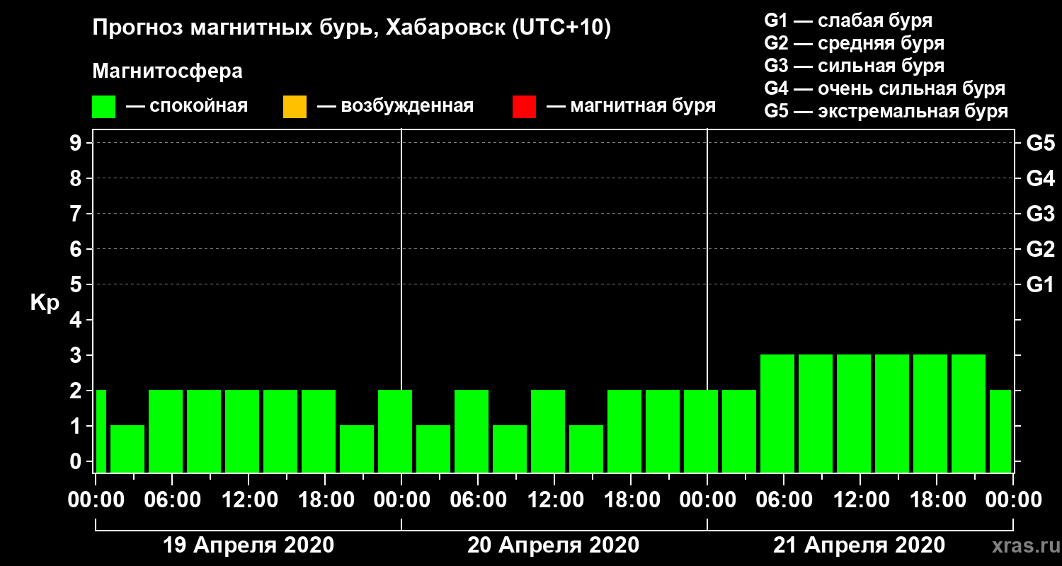 Прогноз магнитных бурь в Хабаровске на 19 апреля 2020 года