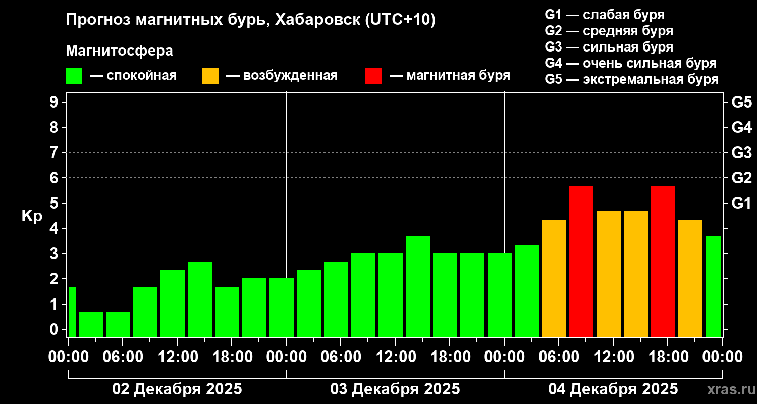 Прогноз магнитных бурь в Хабаровске на 2 декабря 2025 года